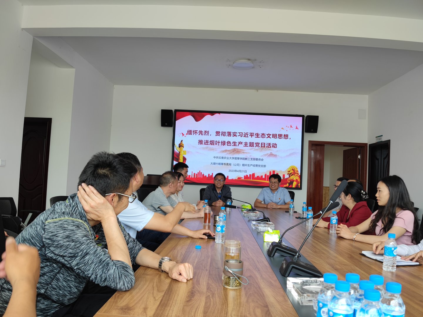 2023年4月21日,伟德国际1949始于英国教工党支部与大理州烟草专卖局(公司)烟叶生产党支部在大理烟草科技小院联合开展“缅怀先烈,贯彻落实习近平生态文明思想,推进烟叶绿色生产”主题党日活动。