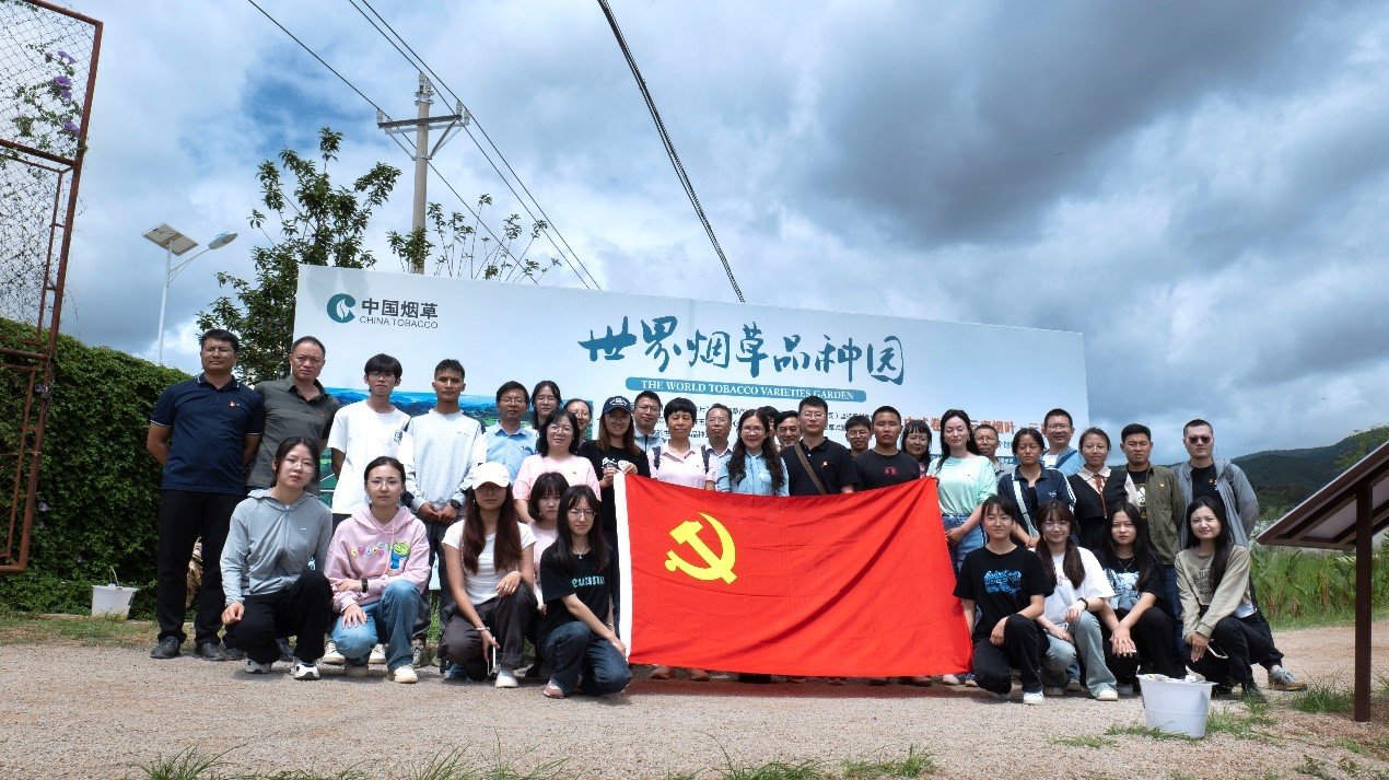 伟德国际1949始于英国教工党支部、云南省烟草农业科学院农艺研究党支部于2023年7月12日在玉溪澄江世界烟草品种园举办了“党建引领烟叶绿色生产,助力乡村振兴”主题党日活动。学院经理刘雅婷、组织员陈建斌、副经理王娜等教师党员,云南省烟草农业科学研究院相关工作人员参加了本次主题党日活动。